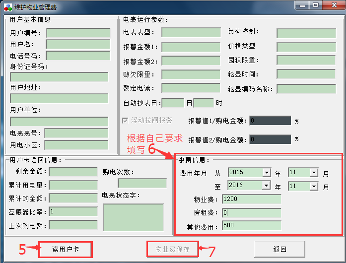 五、物業(yè)設(shè)置:(需要收取物業(yè)費(fèi)用就設(shè)置,不需要此功能就直接忽略)。