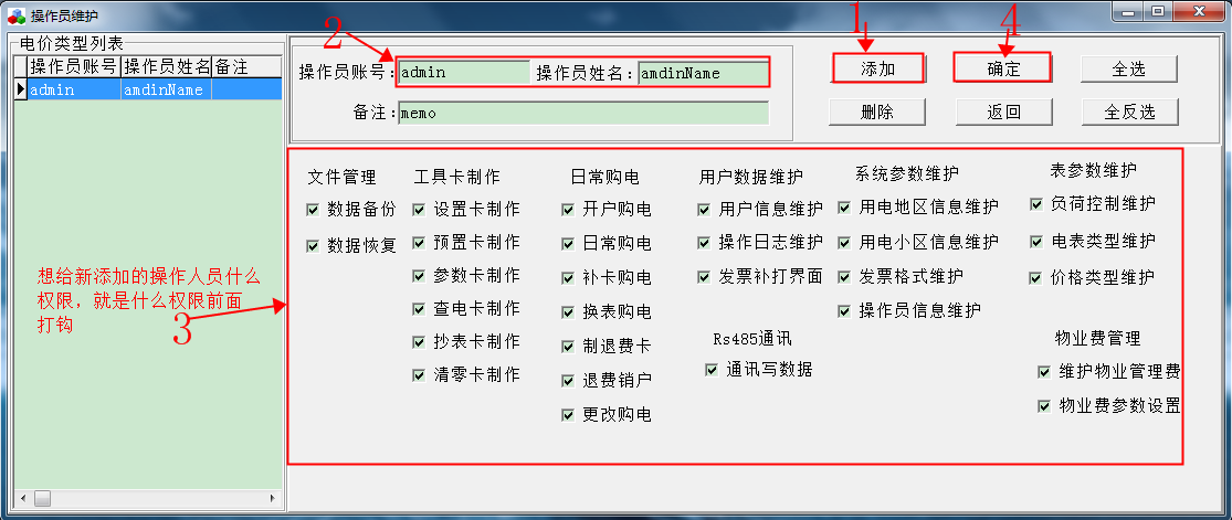 備注:新添加的操作人員登錄密碼是00000000,如需更改,需要用該操作人員登錄,進(jìn)系統(tǒng)更改密碼。