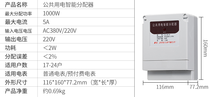 一、智盛牌JL-24-A公共用電智能分配器”是將公共樓道用電所消耗的電能(如樓道燈,對講防盜門等),自動分配到各受益用戶的電表中。每天輪流接通一戶電表,開機通電時第一戶電表隨機產(chǎn)生,達到公平分攤電費的目的。