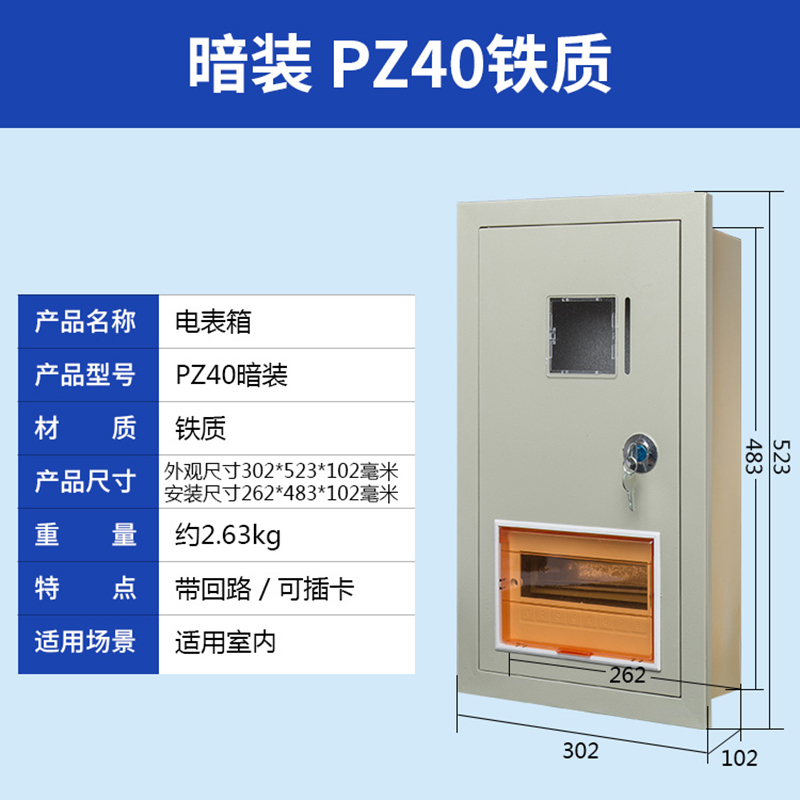 我公司生產的PZ40電表箱采用0.5-1mm厚冷軋鋼板和進口PC高透視窗,并帶有門鎖,安全防盜,大氣美觀。可安裝各類電能表和C45、空氣開關、斷路器閘刀等,廣泛用于家庭、公寓、學校、工廠等場所。